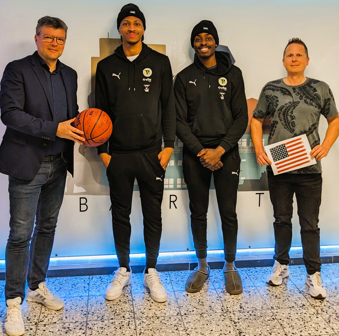Für die Oberstufenschüler des Leistungsfaches Englisch stand am Donnerstag, den 3. April, eine besondere Unterrichtsstunde auf dem Stundenplan: Englisch mit den US-amerikanischen Basketballern Demarcus Demonia und Tehree Horn von der BBC Bayreuth.