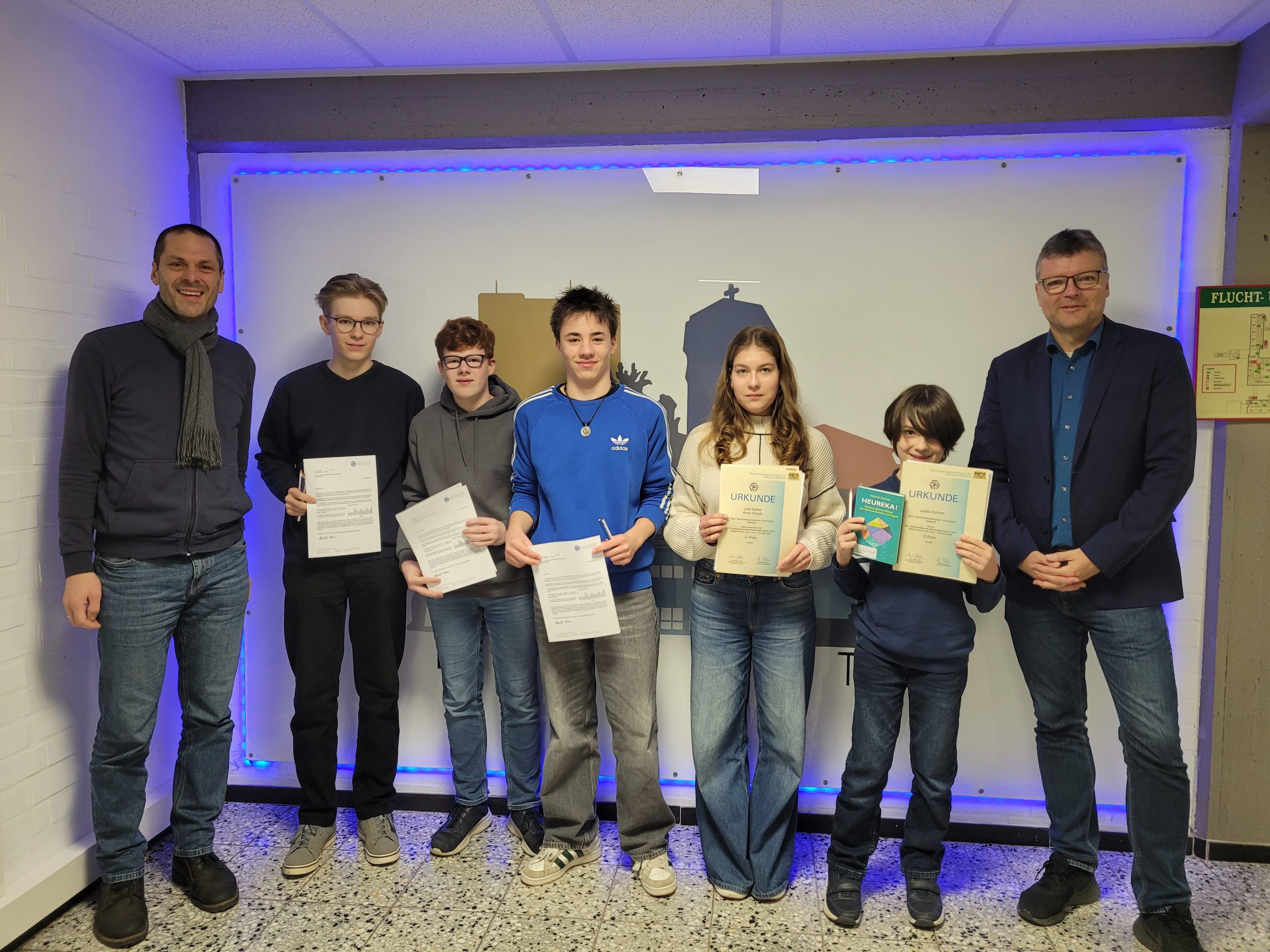 Am WWG Bayreuth gab es Grund zur Freude: Gleich mehrere Schülerinnen und Schüler erzielten hervorragende Ergebnisse bei der ersten Runde des 28. Landeswettbewerbs Mathematik Bayern. Besonders bemerkenswert ist die Leistung von Justus Schmitt, der als Siebtklässler einen 2. Preis erringen konnte und sich so für die nächste Runde qualifizierte – eine außergewöhnliche Leistung in diesem anspruchsvollen Wettbewerb.