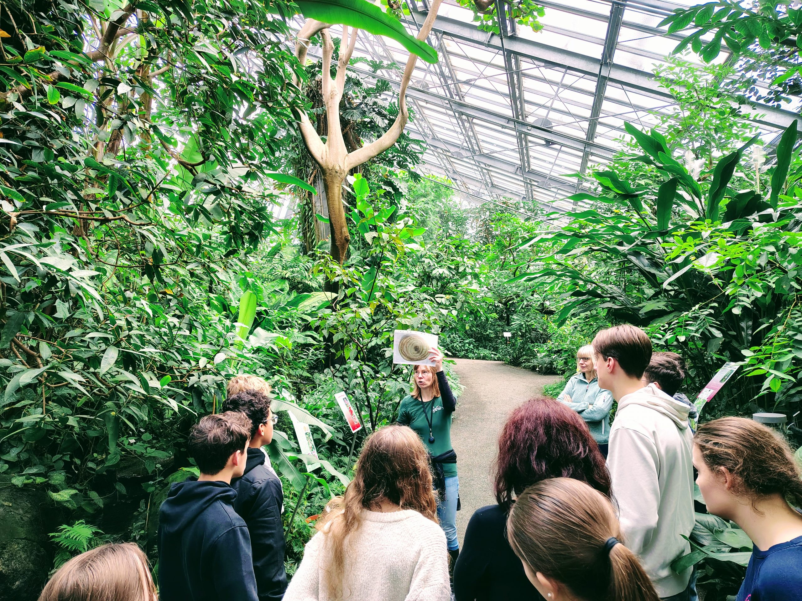 Das WWG ist seit mehreren Jahren offiziell zertifizierte „Fairtrade School“ und setzt sich intensiv mit Themen des fairen Handels bzw. nachhaltigen Handelns auseinander. Das Projekt sollte zum Nachdenken über das eigene Konsumverhalten anregen, indem die FairTrade-Forscher sich zunächst auf der Weltkarte orientierten bzw. tropische Anbauprodukte wie Kaffee, Kakao, Baumwolle und Bananen verorteten. Im Anschluss schaute man sich jene Pflanzen in den Gewächshäusern an und wanderte durch verschiedenste Klima- und Vegetationszonen. Im zweiten Teil des Projekttages verwandelten sich die Schüler in Kleinbauern, Zwischenhändler, Schokoladenfabrikanten sowie Leiter von großen Supermarktketten, wobei bald klar wurde, dass die Kleinbauern in den tropischen Ländern am wenigsten an einer Tafel Schokolade verdienen. Es wurden Möglichkeiten zur Verbesserung der Situation der Kleinbauern diskutiert und letztlich der faire Handel als sinnvolle Option kennengelernt. Eine weitere Alternative wurde am Beispiel der Firma „FairAfric“ erläutert, wobei jene Schokoladentafeln unter streng kontrollierten Bedingungen direkt vor Ort in Ghana hergestellt und ohne Umwege an die (Welt)Läden in Deutschland verkauft werden, sodass Zwischenhändler umgangen werden und letztlich ein höherer Verdienst für die Kleinbauern in Ghana zu verzeichnen ist.