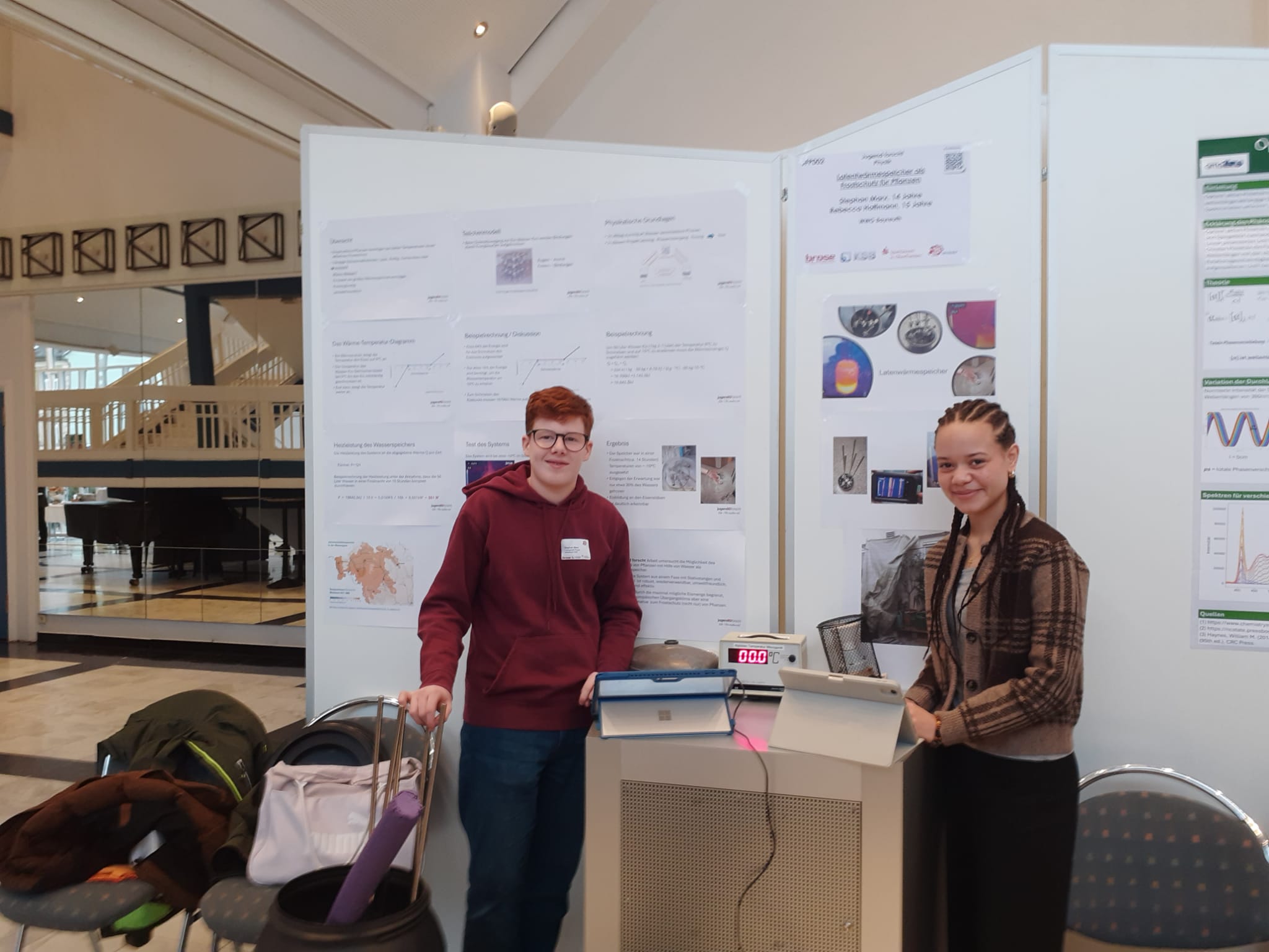 Am Donnerstag war Herr Dr. Stingl mit den Schülern Laurin Große ( Projekt: „Untersuchung eines Verfahrens zur elektro-magnetischen Beschleunigung eines Kreisels“) und dem Team Rebecca Hoffmann / Stefan Marx (Projekt: „Latentwärmespeicher als Frostschutz für Pflanzen“) bei „Jugend forscht“ dabei.