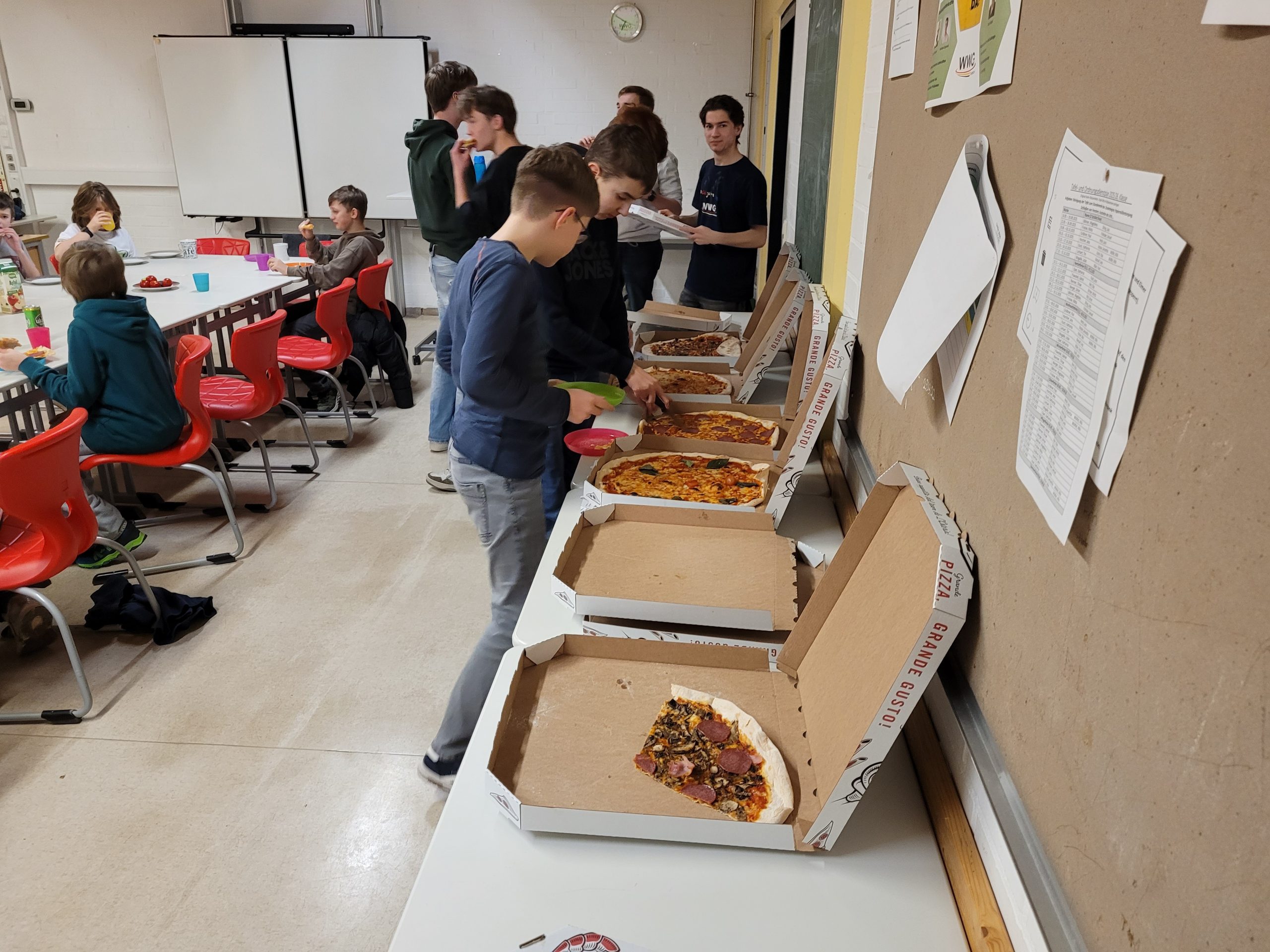 Nach einer weiteren Programmier- und Bauphase gab es ein weiteres Highlight: einen Film rund um Roboter und Technik, passend zur langen Roboternacht. Mit Pizza für alle wurde der Klassenraum zum Kinosaal, und die Teilnehmenden ließen den Abend entspannt ausklingen, bevor es in die Schlafsäcke ging.